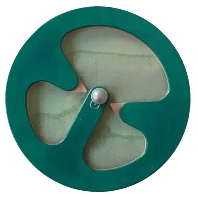 Das Wandspiel Lenkrad blau-grün von Holz, Klang & Spiel bietet fesselnden Spielspaß für Kinder jeden Alters. Wenn das Lenkrad gedreht oder hin und her bewegt wird, rieselt feiner Kunststoffsand durch zwei Öffnungen, ähnlich wie bei einer Sanduhr. Dieses faszinierende Drehspiel fördert die motorischen Fähigkeiten und sorgt gleichzeitig für spannende Unterhaltung.