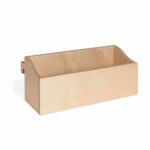 Die im Set enthaltene Aufbewahrungskiste ist nicht nur funktional, sondern lässt sich auch einfach in das Wandspiel einhängen. So sind die Spielsteine stets griffbereit und ordentlich verstaut. Wenn die Kinder im Freispiel kreativ werden möchten, kann die Kiste problemlos vom Wandelement gelöst werden.