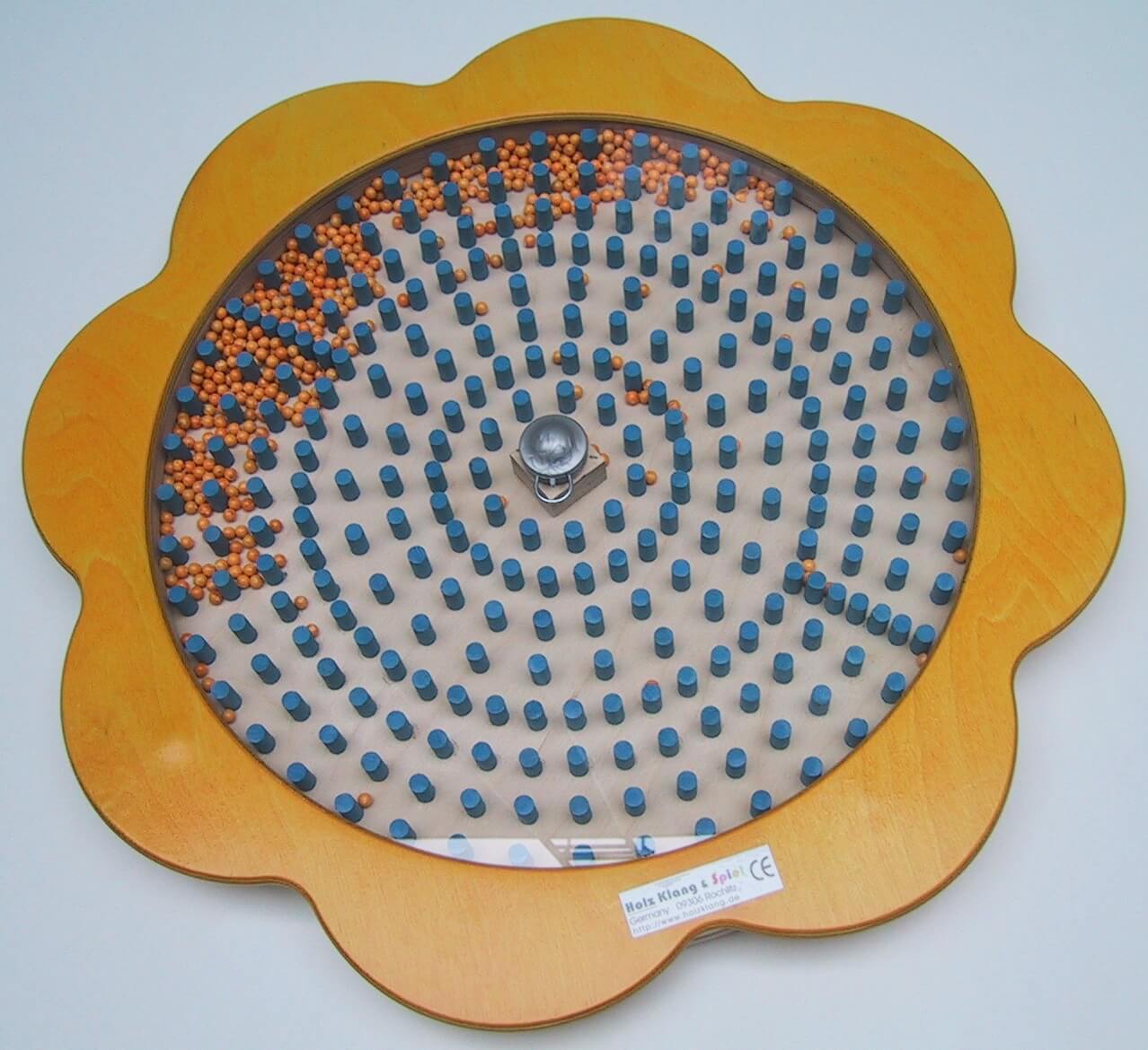 - Material: Birke Sperrholz, farbig gebeizt, Plexiglas, Kunststoffkügelchen