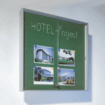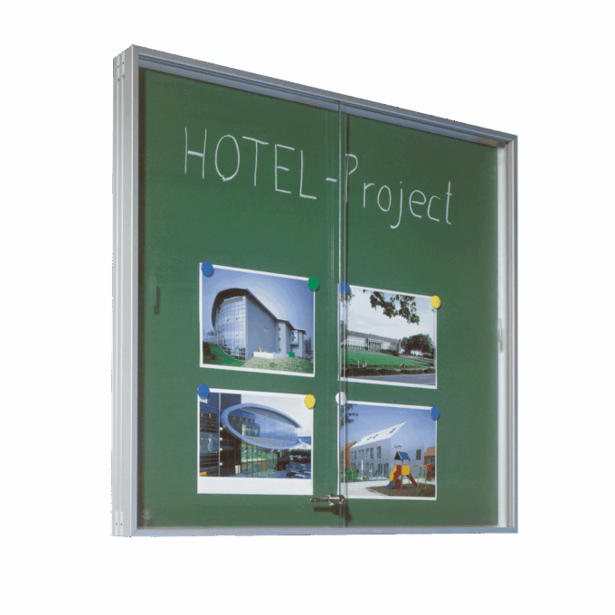 Entdecken Sie unsere multifunktionale Wandvitrine, perfekt für den Bildungsbereich oder das Büroumfeld. Mit ihrem eleganten Aluminiumprofilrahmen und der innovativen grünen Stahlrückwand, die nicht nur magnethaftend ist, sondern auch mit Kreide beschreibbar und leicht zu reinigen, ist diese Vitrine ein wahres Multitalent. Wählen Sie aus drei verschiedenen Größen das passende Modell für Ihre Räumlichkeiten. Die Vitrine präsentiert sich mit einer Schiebetür aus hochwertigem Sicherheitsglas, die für zusätzliche Sicherheit abschließbar ist.