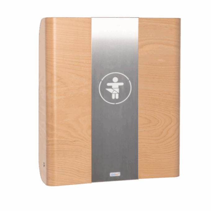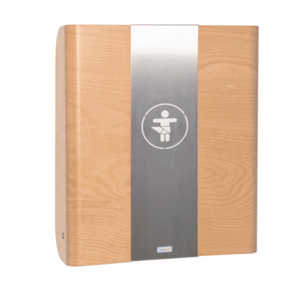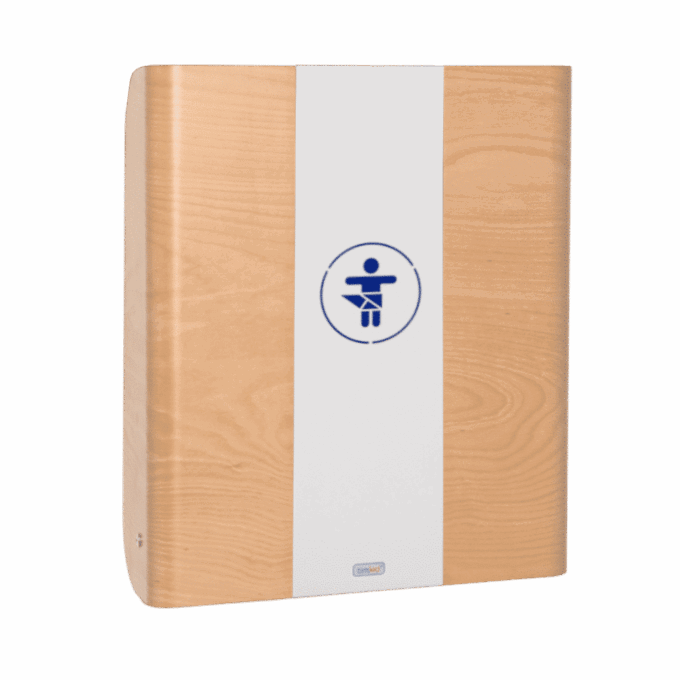Unser formschöner Bestseller ist aus extra belastbarem Formholz gefertigt, das Mittelteil in der Front besteht aus Metall und besitzt ein ausgelasertes Piktogramm (das farbig hinterlegt werden kann). Dadurch erhält dieser Wandwickeltisch ein besonders elegantes Aussehen. KAWAmaxi ist ein attraktiver Blickfang für die Wickelstation im öffentlichen Raum, egal ob Café, Arztpraxis, Hotel oder Restaurant. Dank der großen Wickelfläche können auf KAWAmaxi auch größere Kinder gewickelt werden. Die hochwertigen Materialien garantieren ein langlebiges Produkt, die beschichtete Oberfläche verhindert Kratzer und Abnutzung im Alltag.