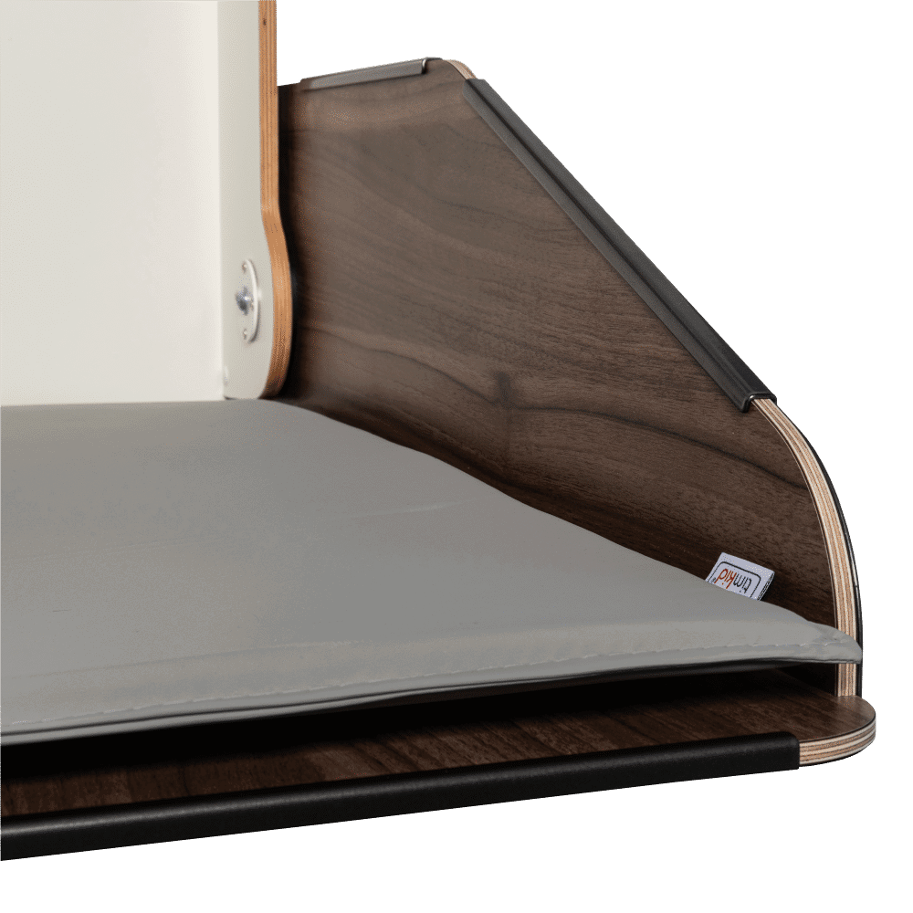 Der robuste Wandwickeltisch kann besonders platzsparend und flexibel in jeder gewünschten Höhe angebracht werden. Mit nur einem Handgriff können Sie Quattro ganz einfach öffnen und wieder schließen. Eingebaute Klappenbremsen sorgen dafür, dass die Wickelplatte nicht ruckartig herabfallen kann.