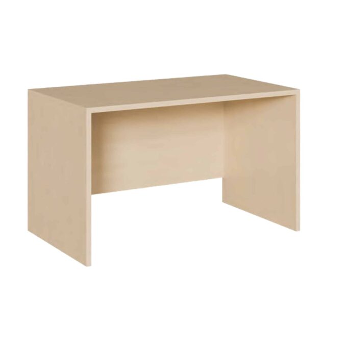 Schlichter und zeitloser Kita Wangenschreibtisch gefertigt aus 25 mm E1-Spanplatte. Einseitig mit Schub ausgestattet. Der perfekte Arbeitsplatz für Kita-Leitung, Erzieher und Mitarbeiter von Hort, Krippe und Kindergarten. Die Schreibtische werden aus solider 25 mm E1-Spanplatte gefertigt und sind in drei Breiten lieferbar