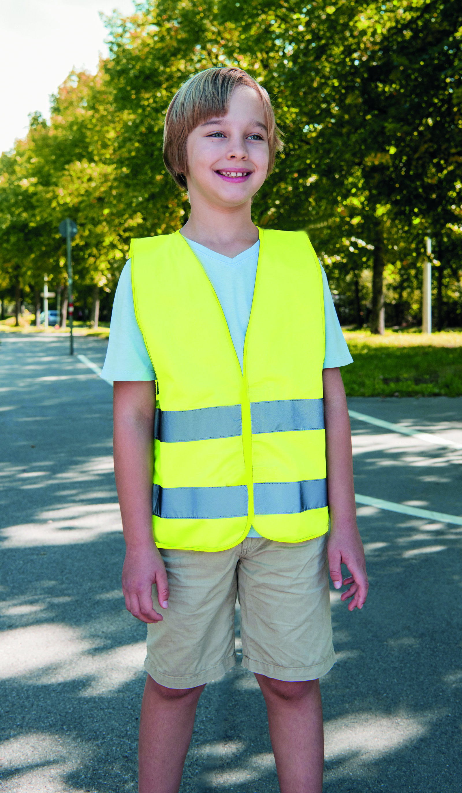- Leuchtende Signalfarbe: Die auffällige Grundfarbe der Weste sorgt dafür, dass Ihr Kind schon von Weitem gut zu sehen ist. Dies ist besonders wichtig an unübersichtlichen Stellen wie Kreuzungen oder Parkplätzen.