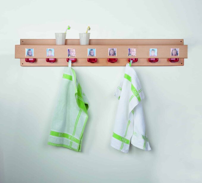- Mehr als nur eine Hakenleiste: Die Kombination aus Haken, Becherablage und Bilderleiste macht dieses Produkt zu einem multifunktionalen Organisationssystem, das den spezifischen Anforderungen von Betreuungseinrichtungen perfekt gerecht wird.