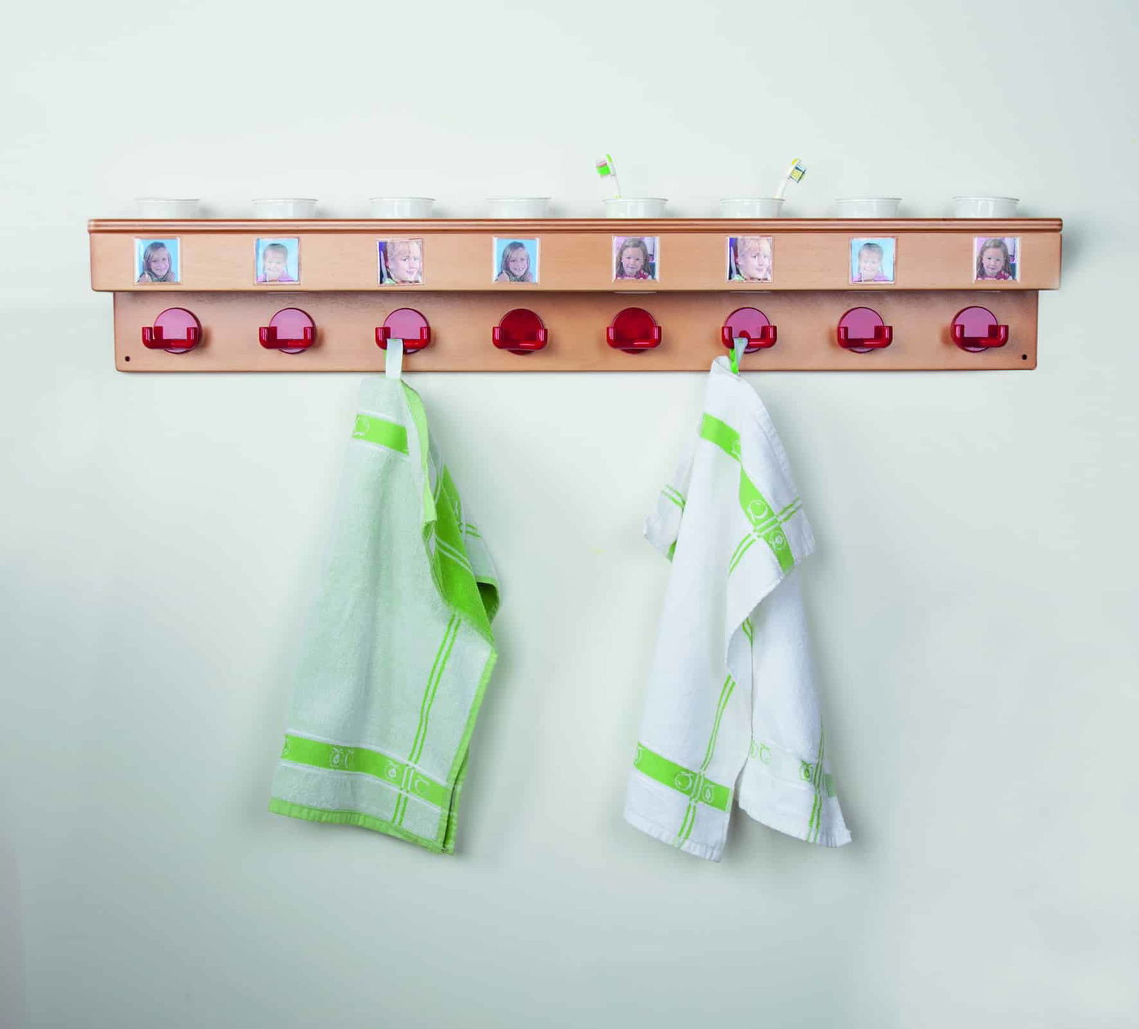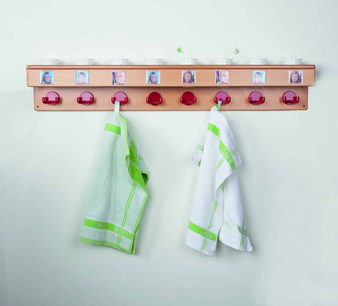 - Intuitive Organisation für Kinder: Dank der persönlichen Erkennungsbilder über jedem Platz wissen selbst die Kleinsten sofort, welcher Becher und welches Handtuch zu ihnen gehört. Dies vermeidet Verwechslungen, stärkt das Verantwortungsbewusstsein und macht die Kinder stolz auf ihren eigenen, klar definierten Bereich.