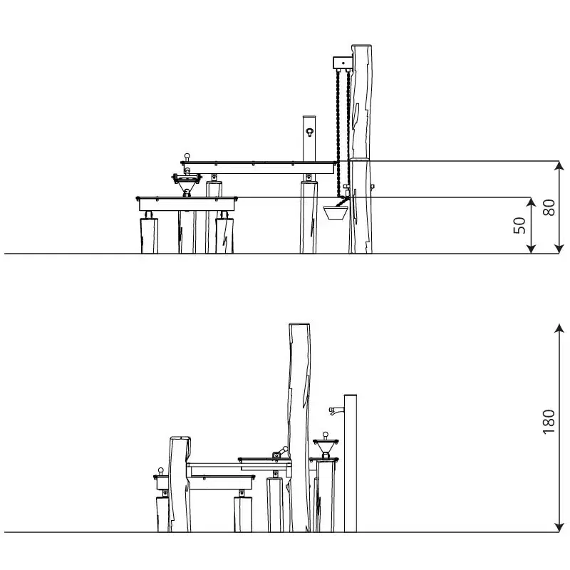 - Durchdachte und wartungsarme Details: Die Wasser- und Matschanlage ist für den dauerhaften Einsatz auf öffentlichen Spielplätzen konzipiert. Der Wasserhahn aus hochwertigem AISI 316 Edelstahl ist für den Anschluss an das öffentliche Wassernetz vorbereitet. Rinnen und Behälter lassen sich dank Edelstahlstopfen leicht entleeren und reinigen. Zudem stellt die garantierte Verfügbarkeit von Ersatzteilen sicher, dass die Spielfreude über viele Jahre erhalten bleibt.