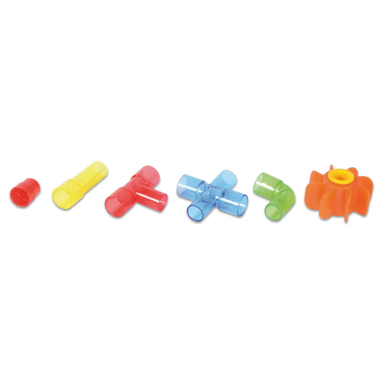 - Lieferumfang: 151 Teile in aufbewahrbarer Box (1 Messbecher, 8 Trichter, 15 Kreuz-Verbindungsstücke, 15 T-Verbindungsstücke, 45 Winkel-Verbindungsstücke, 18 Verschlussstücke, 45 Rohrstücke, 4 Schaufelräder)
