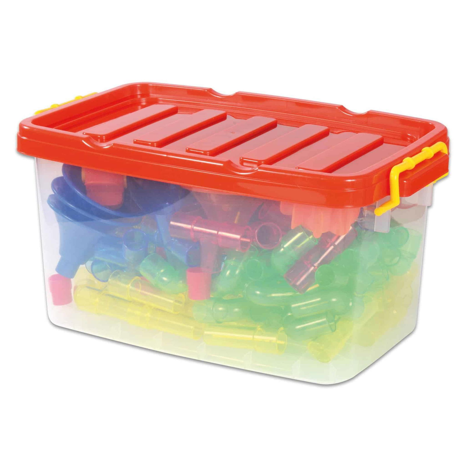 Mit einer Vielzahl von Bauteilen – darunter Rohre, Verbindungsstücke, Stöpsel und Wasserräder – können die kleinen Ingenieure ihrer Kreativität freien Lauf lassen. Das Set enthält alles, was sie brauchen, um ihr eigenes Wassersystem zu gestalten. Wenn das Wasser durch das bunte Rohrsystem fließt, wird das Experimentieren zu einem spannenden und lehrreichen Erlebnis.