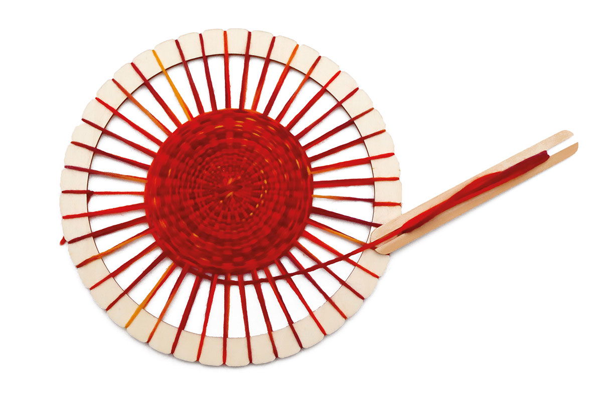 - Fördert Ruhe und Fokus: Die kreisförmige Bewegung hat fast schon etwas Meditatives. Kinder kommen beim Weben zur Ruhe, schulen ihre Feinmotorik und lernen, sich auf einen Prozess zu konzentrieren.