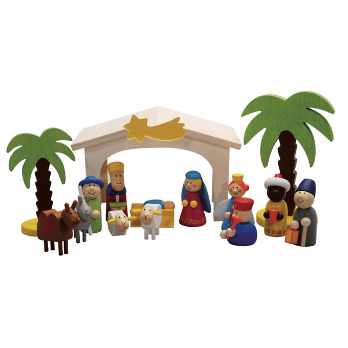- Inhalt: 12 Figuren, 2 Palmen, 1 Krippe, 1 Stall