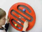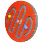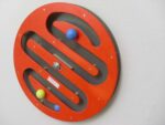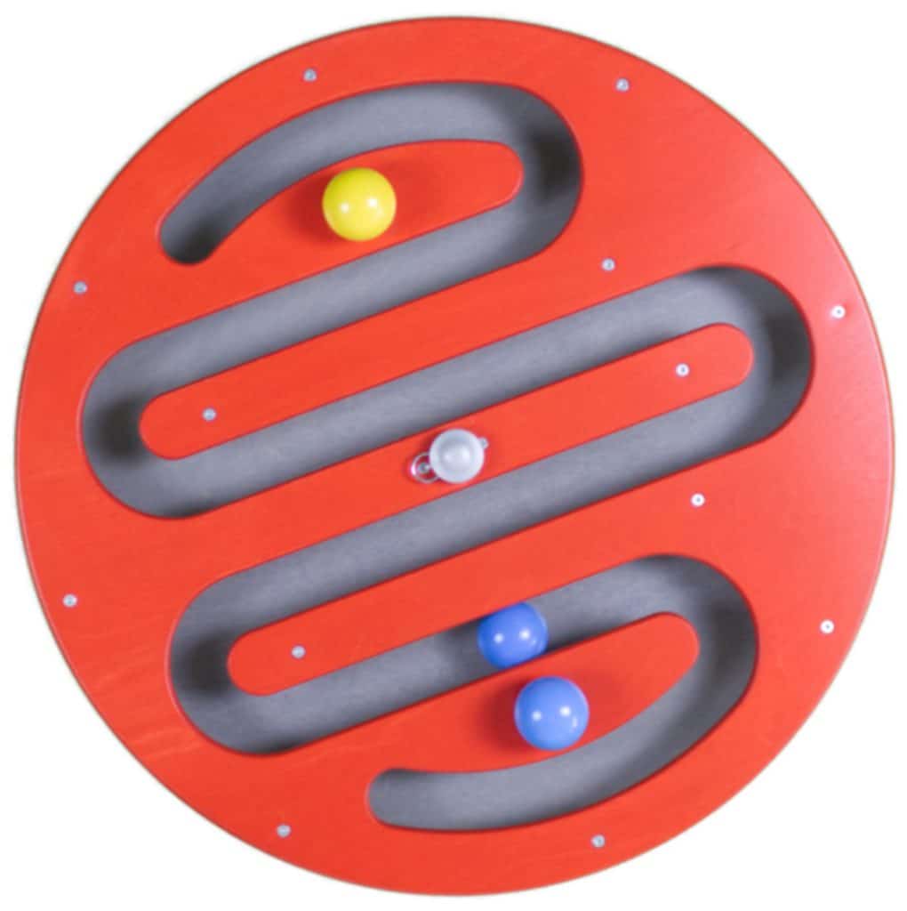 Im runden drehbaren Wandspiel bewegt sich die Kugel im Inneren wie über eine Welle auf und ab. Das Kugelspiel wird auf einen Metallbolzen sicher an der Wand befestigt.