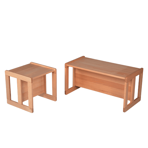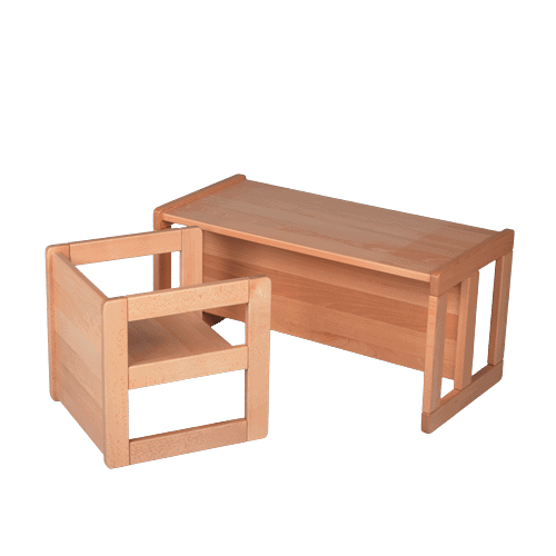 Entdecken Sie das wohl flexibelste und intelligenteste Möbelstück für die Welt der Kinder: unseren Verwandlungsstuhl aus massivem Buchenholz. Dieses geniale Würfelmöbel ist Stuhl, Sessel und Tisch in einem und passt sich durch einfaches Drehen und Wenden blitzschnell an die Bedürfnisse und die Größe der Kinder an. Ob als erster Stuhl für die Allerkleinsten, als gemütlicher Sessel mit Armlehnen für Kindergartenkinder oder als praktischer Spieltisch – dieses eine Möbelstück begleitet die Entwicklung über Jahre hinweg. Seine schlichte, robuste und natürliche Art macht es zu einem zeitlosen Klassiker, der in keiner Kita fehlen sollte.