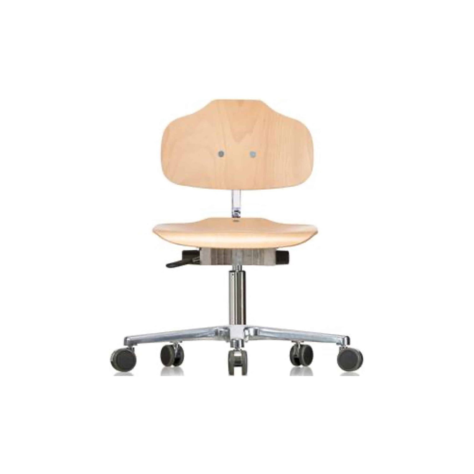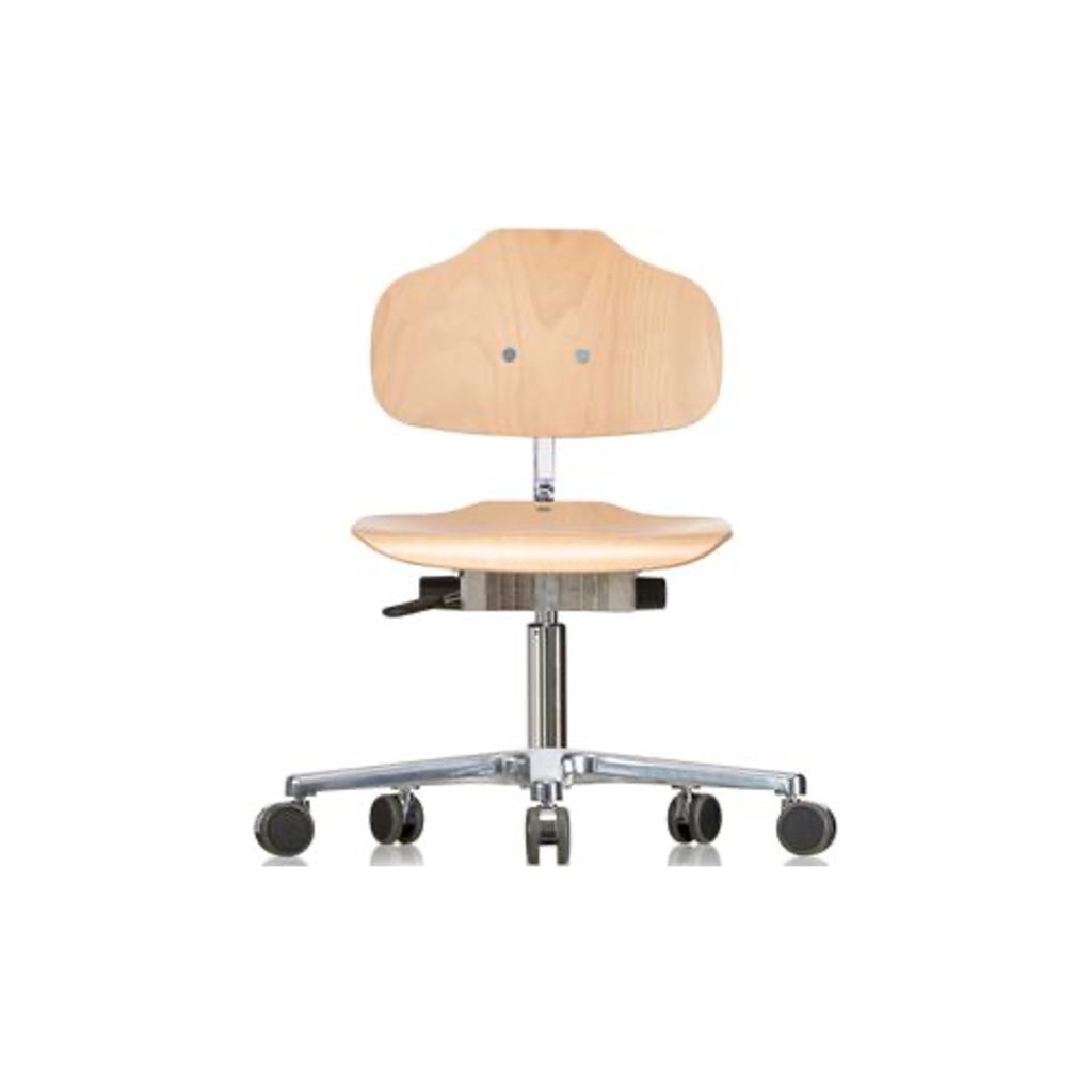 Technische Daten WERKSITZ Erzieherstuhl mit Rollen, Holzlehne und Sitz in niedriger Ausführung