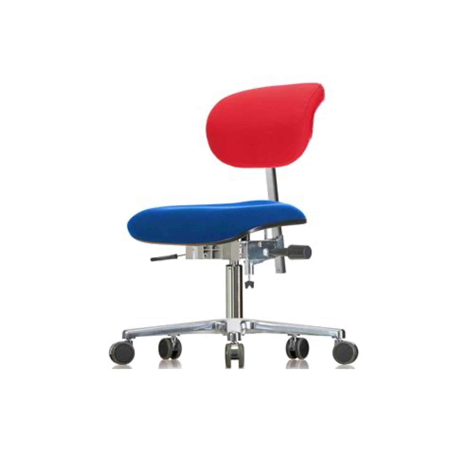 WERKSITZ Erzieherstuhl mit Rollen und Thoraxlehne aus Stoff. Ergonomisch – auf Augenhöhe mit WERKSITZ – Speziell für Kindergärten entwickelt. Gesundes und dynamisches Sitzen durch großzügig dimensionierte, ergonomische und neigungsverstellbare Sitzflächen sowie durch die hohe Rückenlehne mit individuell regulierbarem Anpressdruck.