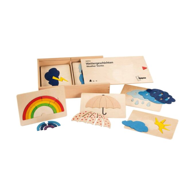 Das Set ist vielseitig einsetzbar – sei es zu Hause, in Kindergärten oder Grundschulen. Es regt nicht nur die Fantasie an, sondern stärkt gleichzeitig die Feinmotorik und Konzentration der Kinder. Verstaut in einem praktischen Holzkasten ist alles sicher und ordentlich aufbewahrt. Mit Wettergeschichten lassen sich wichtige Lernenheiten ebenso wie spannende Erzählstunden gestalten, die Groß und Klein begeistern!