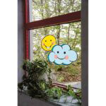 Die Wettersymbole kommen besonders gut zur Geltung, wenn sie am Fenster platziert werden, wo die Leuchtkraft der Farbbilder voll zur Wirkung kommt. Das Set enthält sechs A3-Folien mit insgesamt 36 verschiedenen Wetter-Motiven, die teilweise zum Zerschneiden geeignet sind. Dadurch können die Symbole flexibel und kreativ eingesetzt werden.