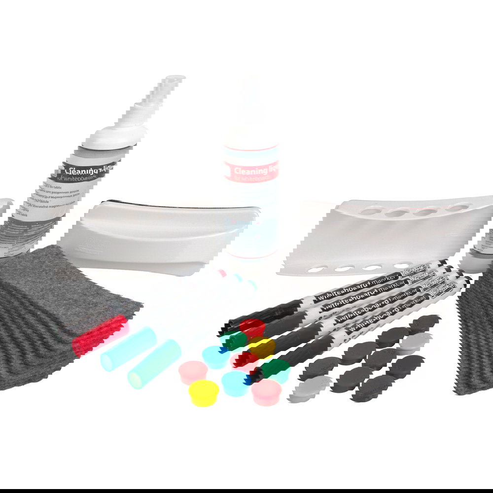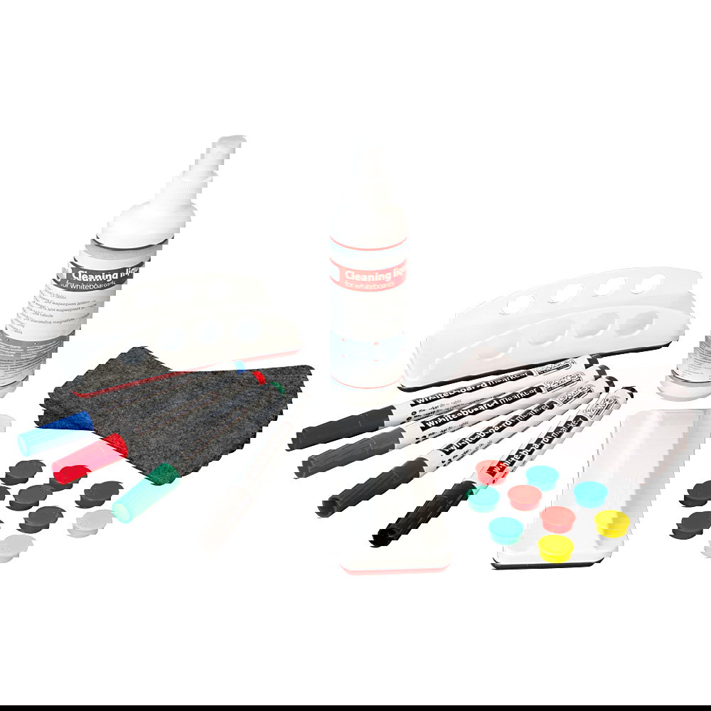Schluss mit dem mühsamen Zusammensuchen von Einzelteilen. Dieses Set bietet Ihnen alles, was Sie für den täglichen Gebrauch Ihres Whiteboards benötigen: Schreiben, Befestigen, Reinigen und Pflegen. Es ist die ideale Ergänzung zu jedem neuen Board oder das perfekte Upgrade für bestehende Ausstattung. - Ordnung direkt am Board