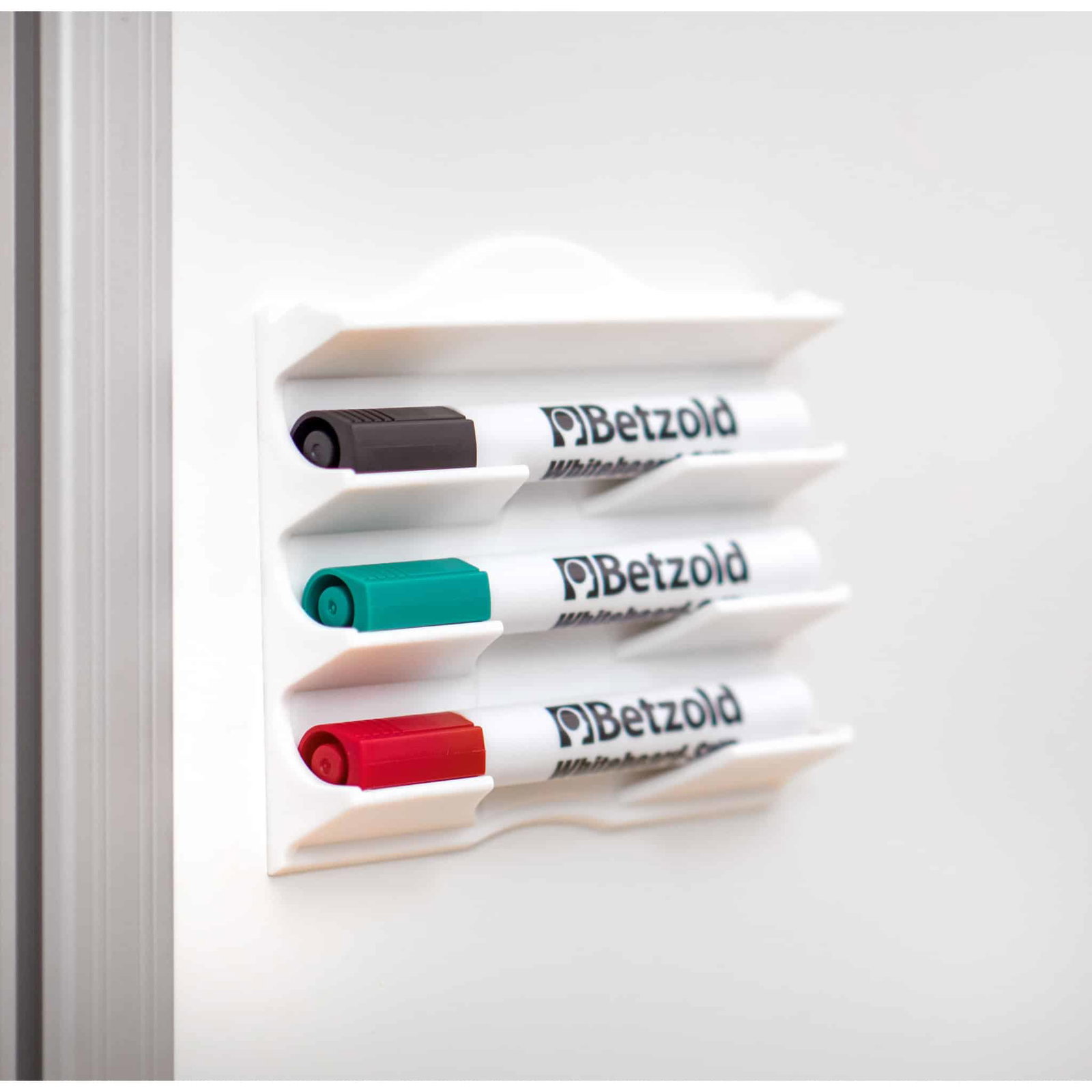 Mit Platz für bis zu 4 Stifte bietet die Ablage ausreichend Raum, um gängige Farben stets griffbereit zu haben. Ob für den Unterricht, bei Projekten oder während kreativer Besprechungen – die Stifte bleiben ordentlich aufgeräumt und können im Handumdrehen genutzt werden.