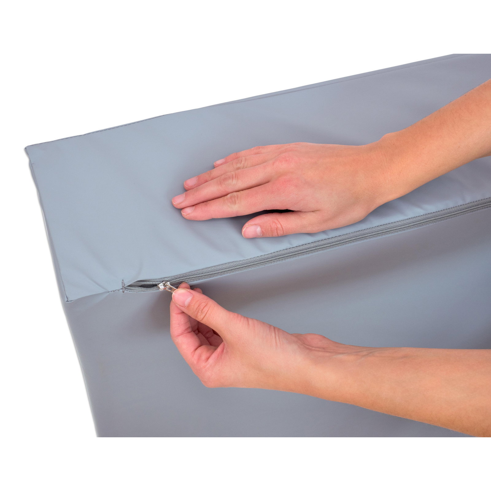 Für eine besonders gründliche Tiefenreinigung haben wir die Auflage mit einem verdeckten Reißverschluss ausgestattet. Sie ziehen den Bezug mit wenigen Handgriffen ab und geben ihn direkt in die Waschmaschine. Das Material ist bei bis zu 95 °C kochfest waschbar. Durch diese extrem heiße Wäsche beseitigen Sie Bakterien und Keime zuverlässig. Sie erfüllen damit mühelos die strengsten Hygienevorschriften Ihrer Einrichtung und schützen die Gesundheit der Ihnen anvertrauten Kinder nachhaltig.