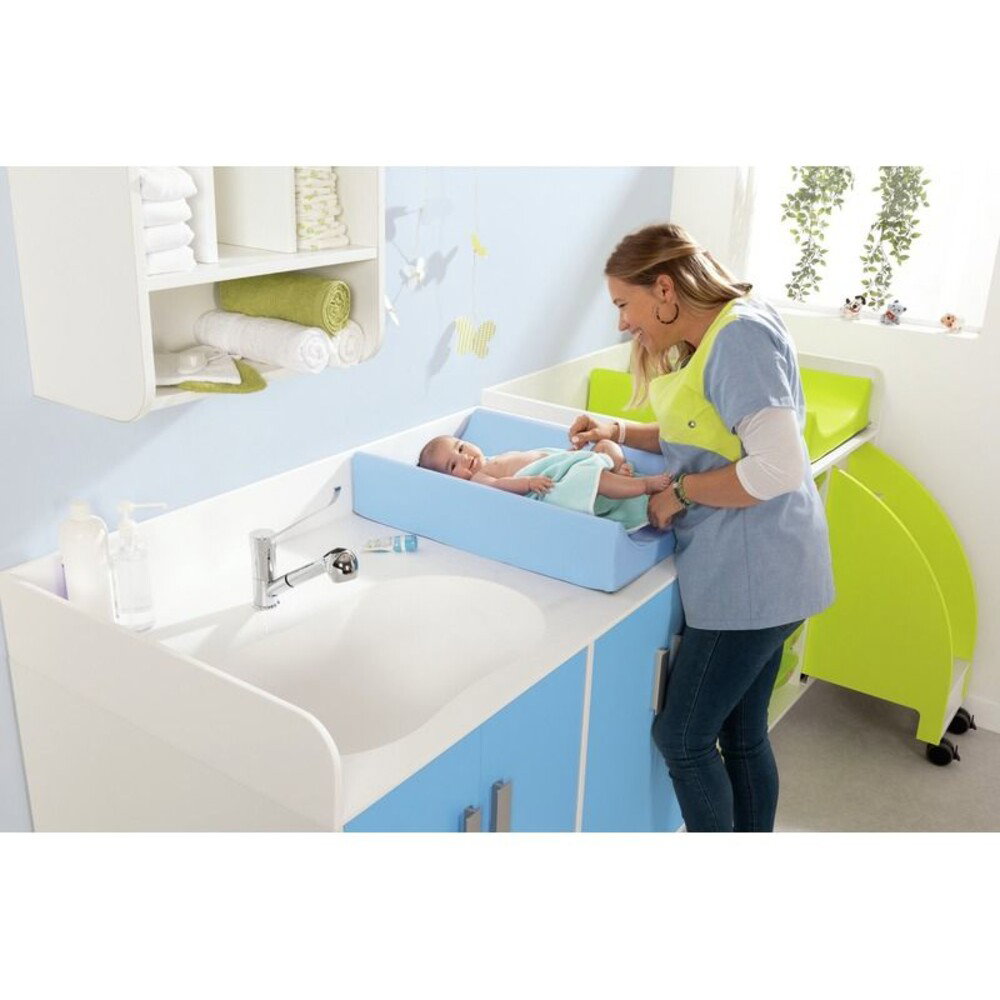 Mit Abmessungen von 70 cm Länge, 50 cm Breite und einer variablen Dicke von 5 bis 15 cm passt die Auflage perfekt auf viele Wickelmöbel. Sie ist geeignet für Kinder bis zu einem Gewicht von 15 kg.