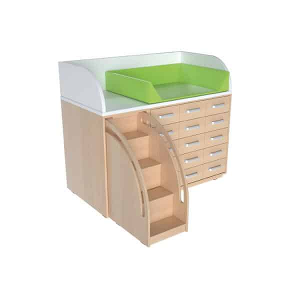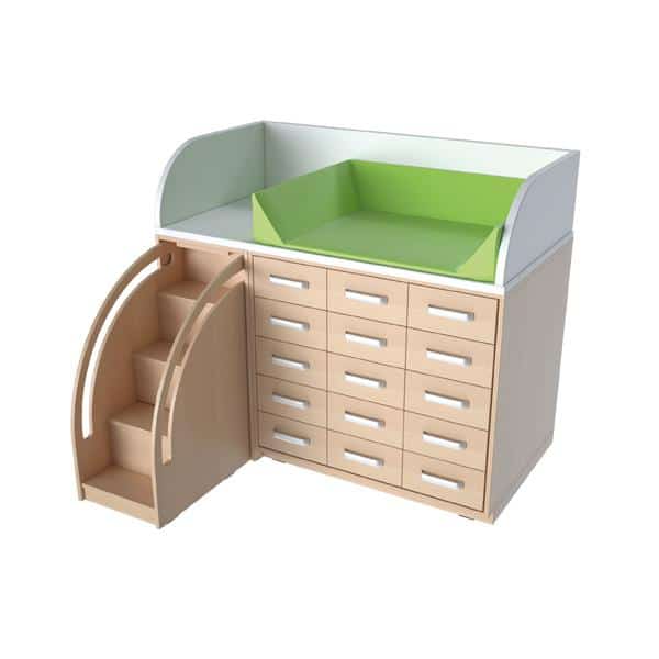 Wickelkommode – Breite: 146 cm – Treppe links für Kitas & Kindergärten