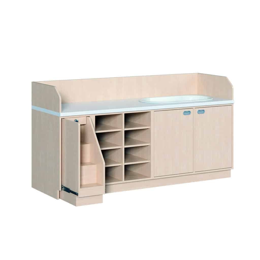 - Großzügiger Wickelbereich: Professioneller Arbeitsplatz mit wasserfester 3,8 cm dicker Arbeitsplatte für entspannte Pflegesituationen.