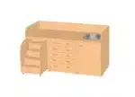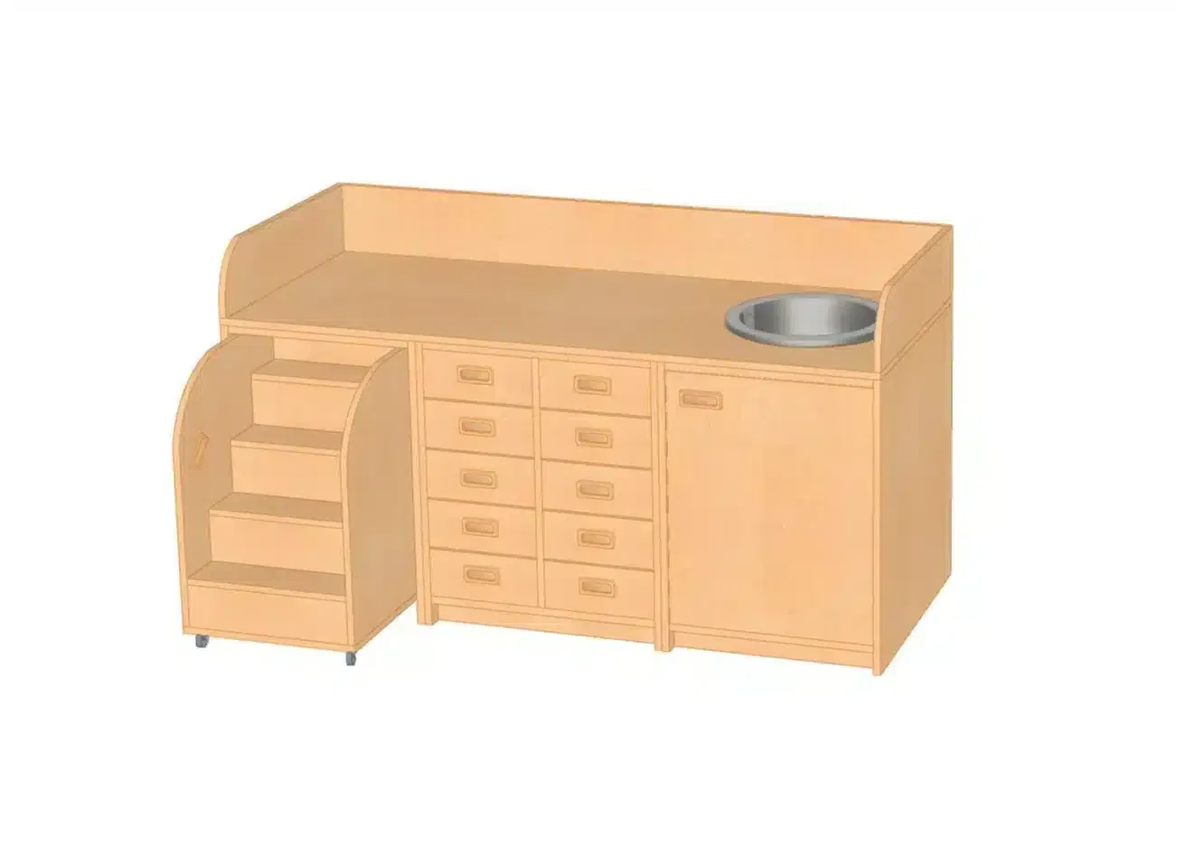 Unsere Wickelkommode mit ausziehbarer Treppe, Waschbeckenschrank mit Tür, Waschbecken aus Edelstahl und 10 Schubkästen im Dekor Buche bietet eine durchdachte und vielseitige Lösung für Ihre Wickelräume. Diese hochwertige Wickelanlage ist ideal für Kindergärten, Kitas und andere pädagogische Einrichtungen, um eine angenehme und sichere Wickel- und Pflegezeit zu gewährleisten.