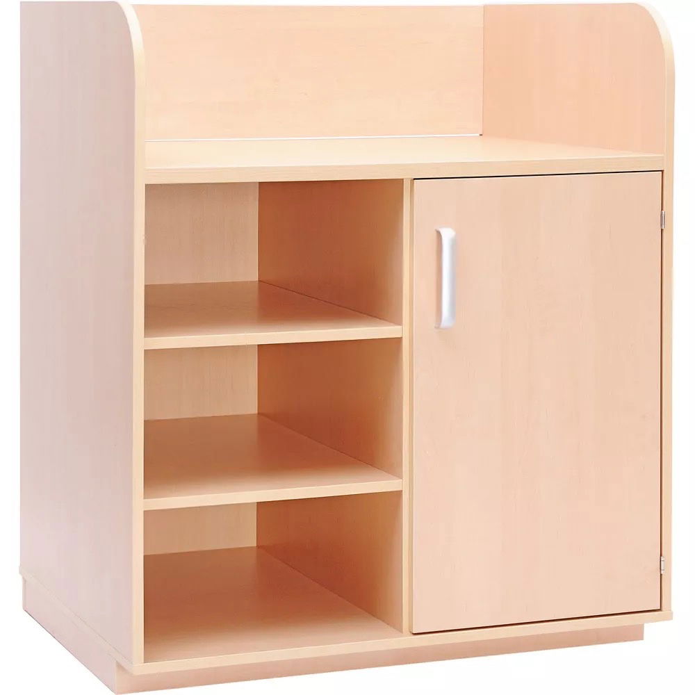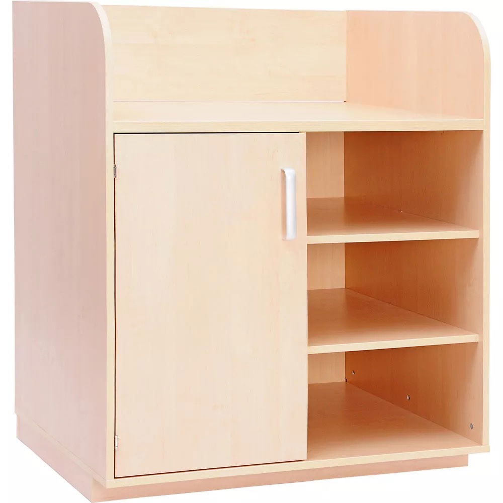 In der Krippe und Kindertagespflege ist ein gut organisierter Wickelplatz entscheidend für einen reibungslosen Tagesablauf. Die Wickelkommode mit offenem Regal bietet die ideale Grundlage für eine funktionale und gleichzeitig sichere Pflegestation. Mit ihrem durchdachten Design, das eine großzügige Wickelfläche mit leicht zugänglichem Stauraum verbindet, unterstützt sie Erzieherinnen und Erzieher optimal bei der täglichen Arbeit. Ob Windeln, Feuchttücher oder Wechselwäsche – in den geräumigen Fächern findet alles seinen Platz und ist sofort griffbereit. Erhältlich in klassischer Birke-Optik oder schlichtem Weiß, fügt sich dieses Möbelstück harmonisch in jedes Raumkonzept ein und lässt sich bei Bedarf sogar noch individuell erweitern.