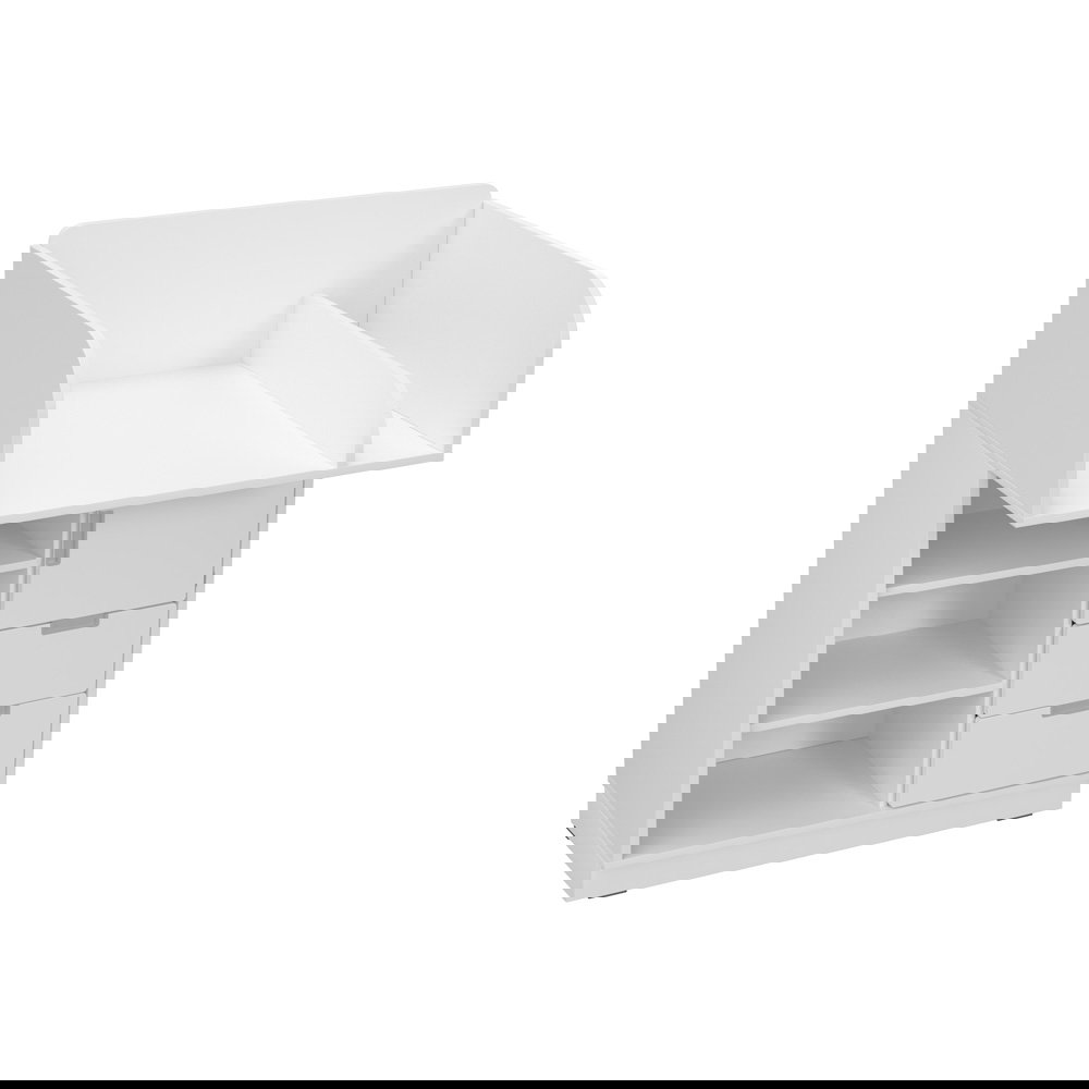 - Material Korpus: Laminierte Spanplatte (Stärke: 18 mm), weißes Dekor