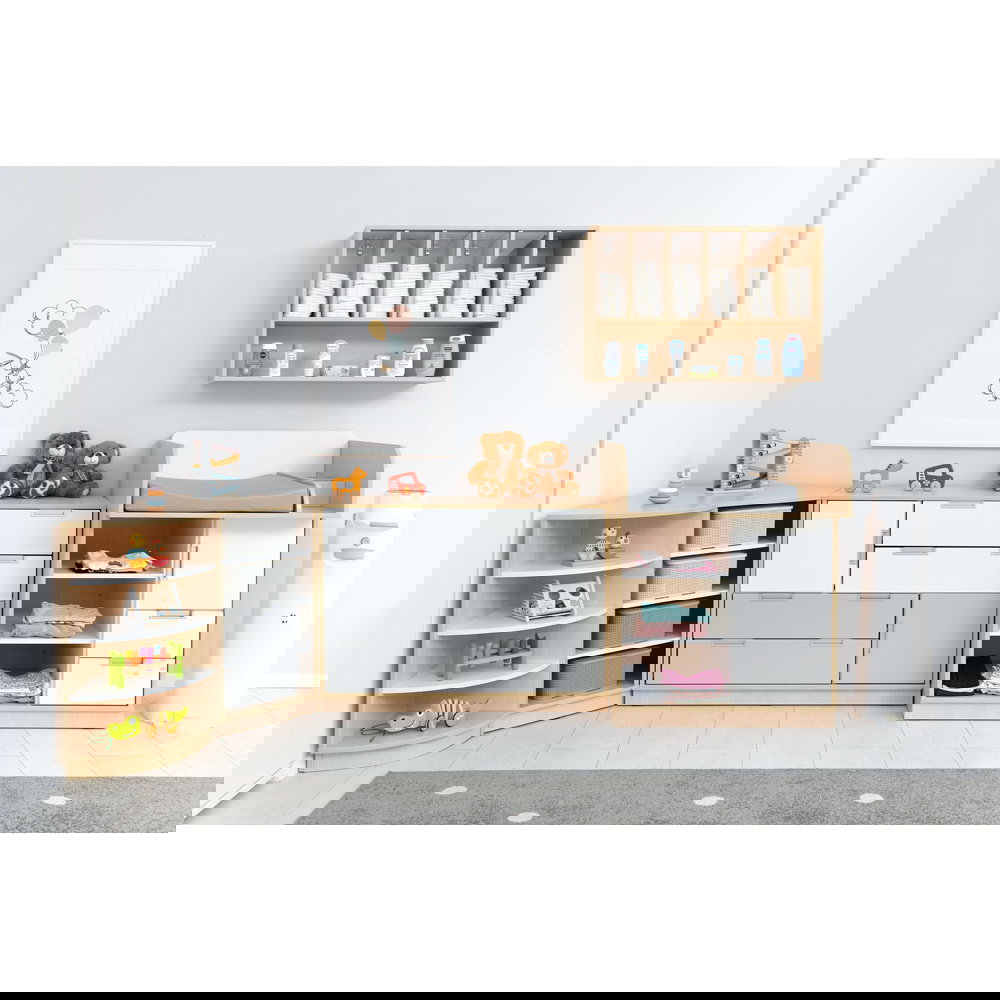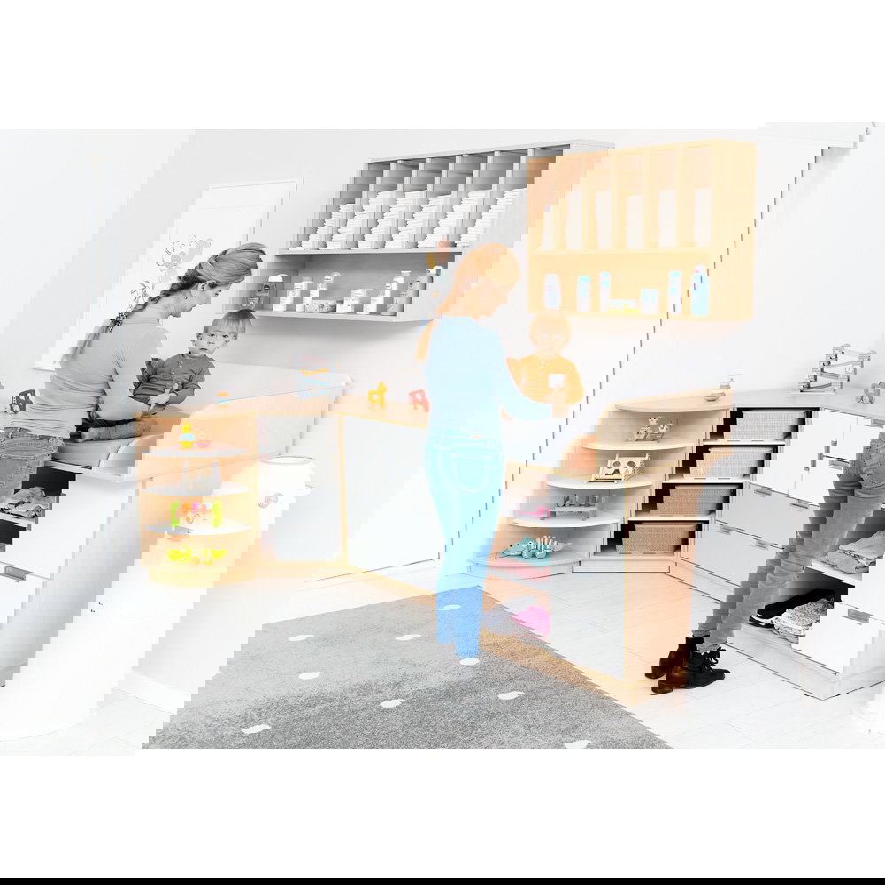 - Robuste Langlebigkeit: Die dicken Spanplatten und kratzfesten Fronten garantieren eine lange Lebensdauer im intensiven Krippenalltag.