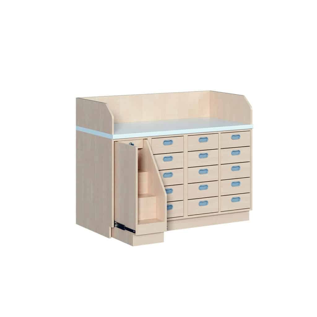 Wickelkommode vierreihig – mit 15 Dekorschüben und Aufstiegshilfe – Maximaler Stauraum für professionelle Pflegeorganisation