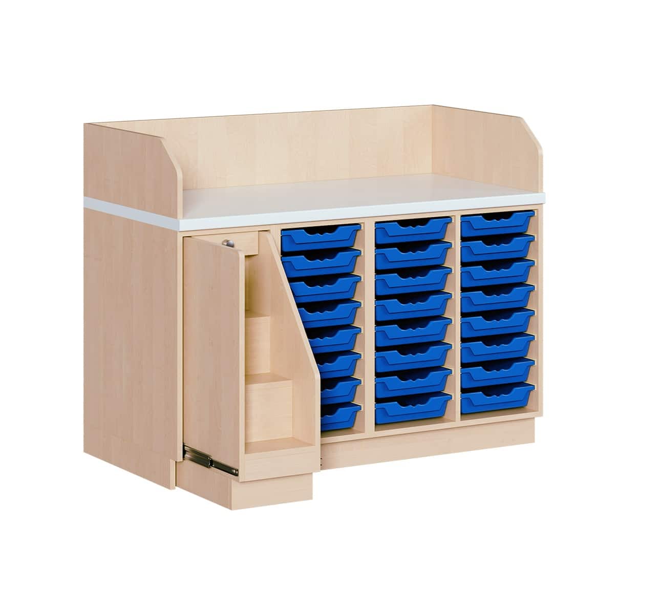 - Wickelkommode vierreihig – mit 24 ErgoTray-Boxen und Aufstiegshilfe
