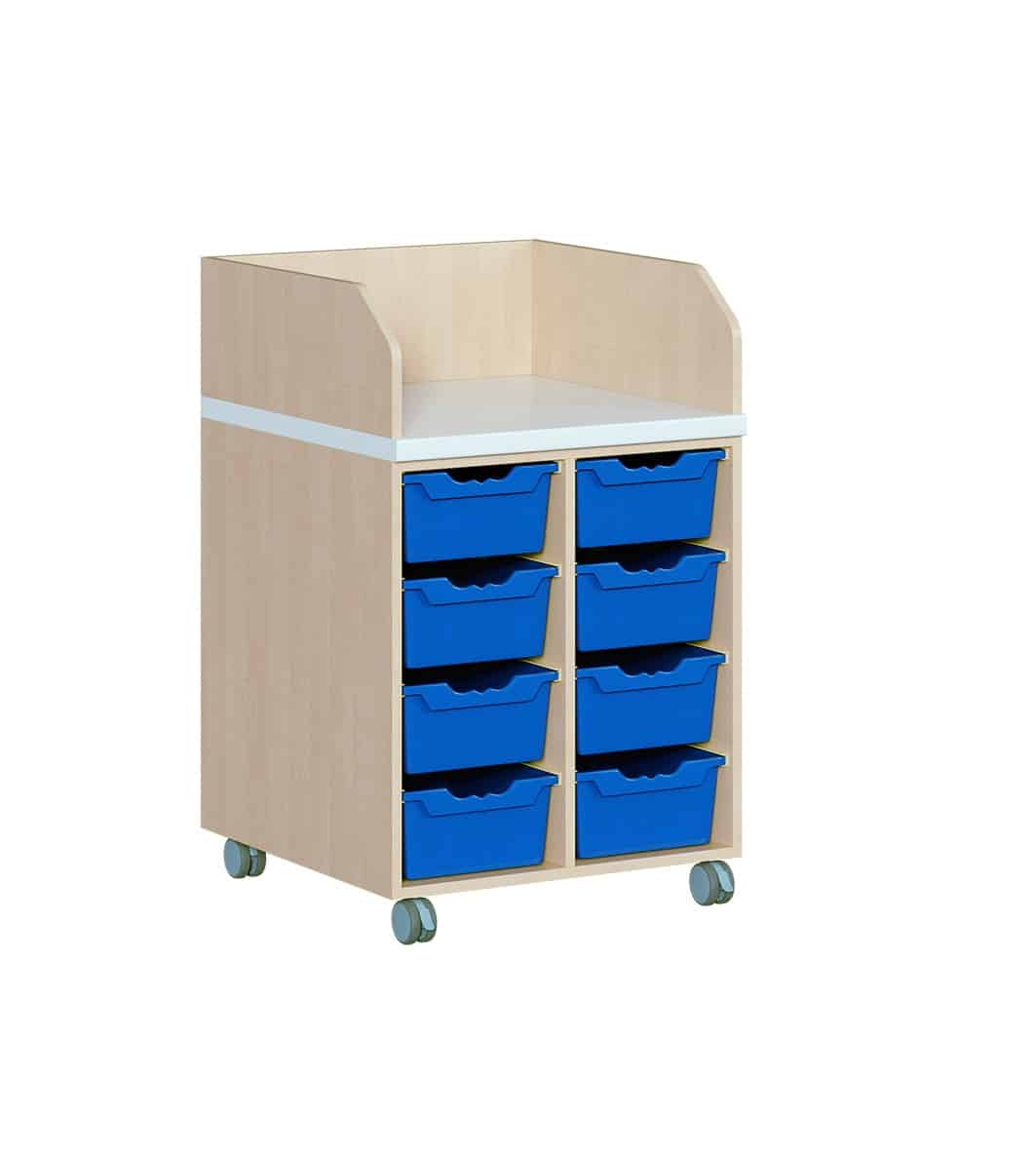Wickelkommode zweireihig fahrbar – mit 8 ErgoTray-Boxen – Die mobile Pflegelösung für grenzenlose Flexibilität