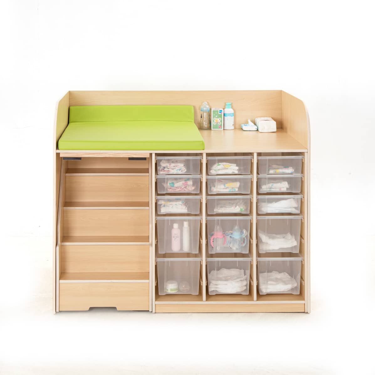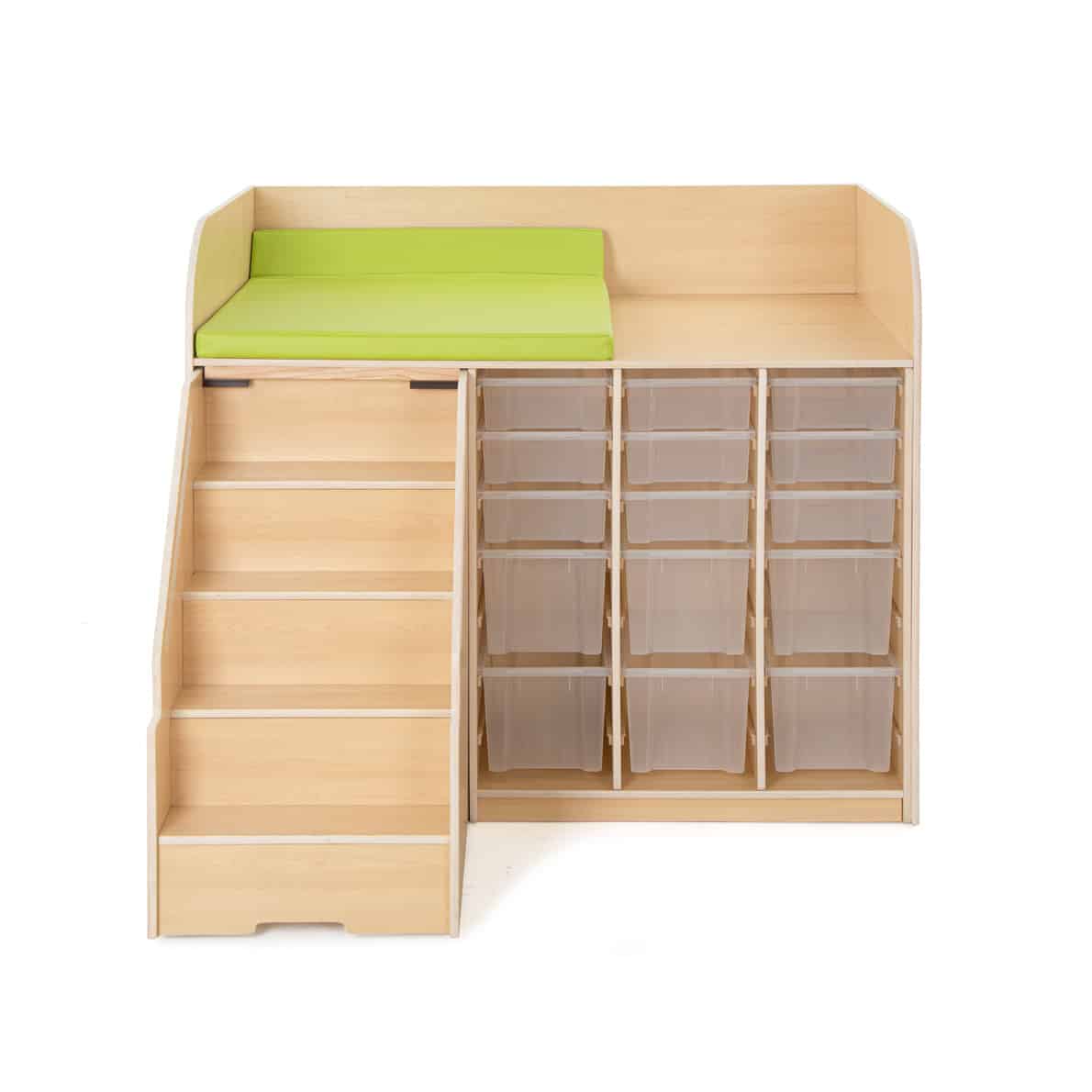 Entdecken Sie die perfekte Lösung für Ihre Einrichtung mit unserer Wickelstation – Version A! Speziell für den Einsatz in Kindertagesstätten konzipiert, vereint diese Wickelstation eine komfortable Wickelfläche mit durchdachten Stauraummöglichkeiten und sorgt so für eine reibungslose Wickelroutine.