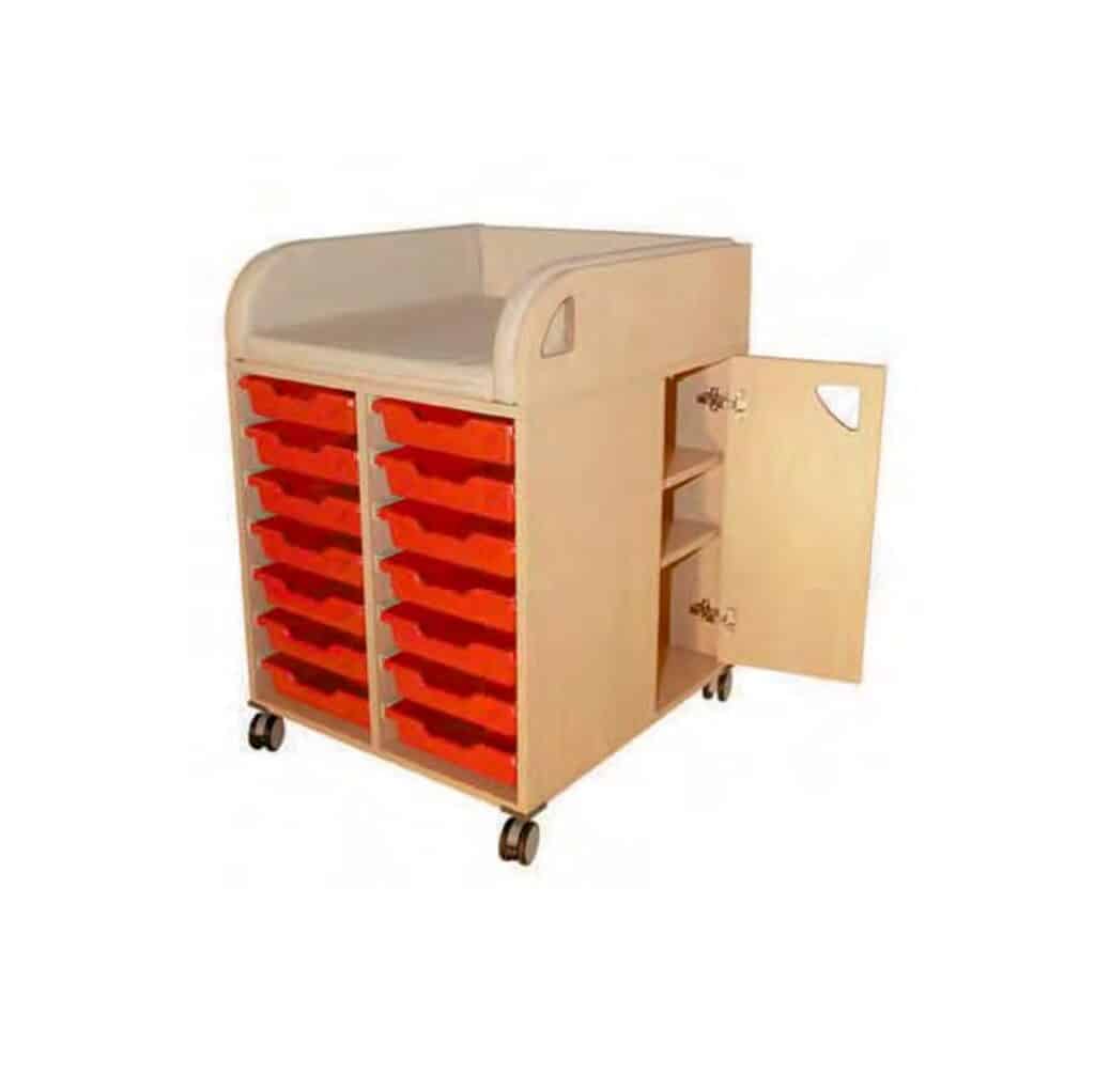 Fahrbarer Wickeltisch mit Türen für 2×7 Kunststoffschüben – Mobil & Praktisch