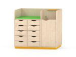 - Leise und durchdachte Funktionalitäten: Die Schubladen sind mit leisen Rollführungen ausgestattet und verfügen über einen Auszugsstopp, um unbeabsichtigtes Herausziehen zu verhindern. Dies erhöht die Sicherheit und sorgt dafür, dass auch die kleinen Helfer selbstständig ihre Sachen einräumen können.