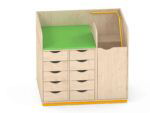 - Hochwertige Materialien: Die Wickelkommode ist aus laminierter Spanplatte mit einer Stärke von 18 mm in ansprechender Ahorn-Optik gefertigt und hat langlebige ABS-Kanten. Der wasserfeste Sockel aus gelber HDPE-Platte ist eine praktische Ergänzung, die die Reinigung erleichtert und zusätzliche Langlebigkeit bietet.