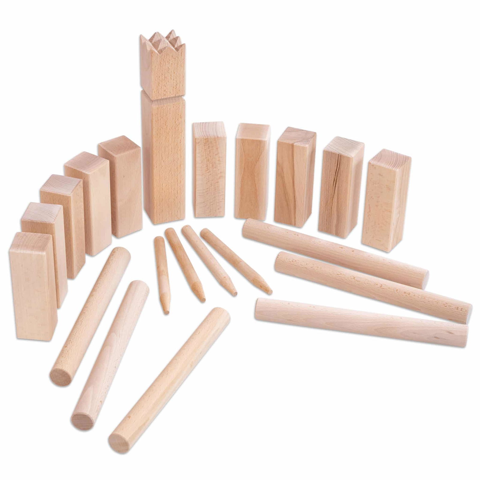Das Spielprinzip ist einfach und macht enormen Spaß. Die Spieler stellen die Klötze in zwei Reihen gegenüber auf, wobei der König in die Mitte platziert wird. Das Ziel des Spiels ist es, die gegnerischen Klötze (Bauern) nacheinander umzuwerfen und schließlich den König zu treffen. Hier kommen Treffsicherheit, Strategie und Teamarbeit ins Spiel. Anfeuern und Taktiken diskutieren – so wird jede Runde zu einem aufregenden Ereignis!