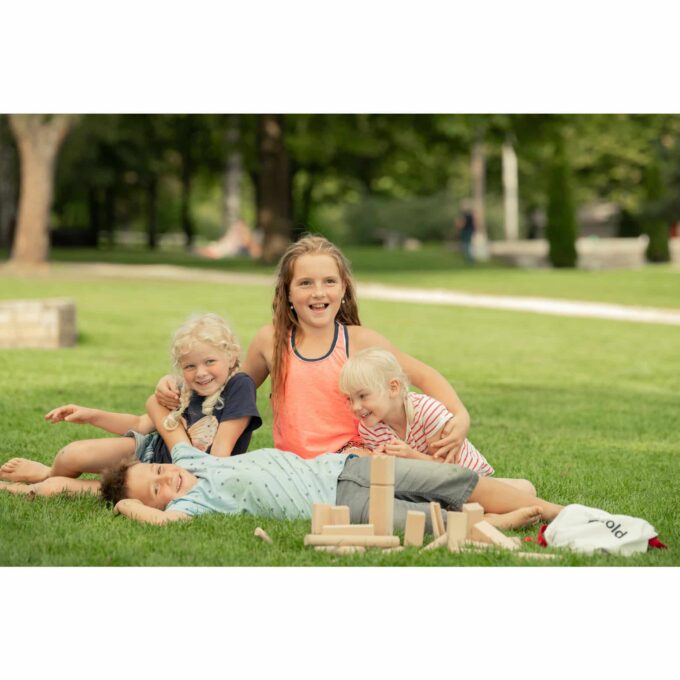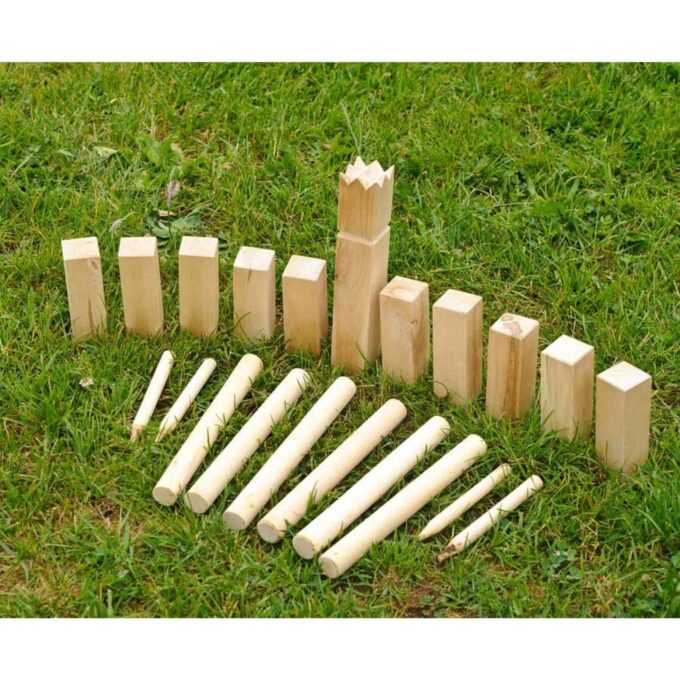 Das Spielprinzip ist einfach und macht enormen Spaß. Die Spieler stellen die Klötze in zwei Reihen gegenüber auf, wobei der König in die Mitte platziert wird. Das Ziel des Spiels ist es, die gegnerischen Klötze (Bauern) nacheinander umzuwerfen und schließlich den König zu treffen. Hier kommen Treffsicherheit, Strategie und Teamarbeit ins Spiel. Anfeuern und Taktiken diskutieren – so wird jede Runde zu einem aufregenden Ereignis!