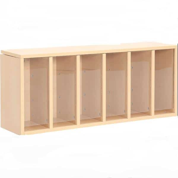 Windelhängeregal – platzsparende Aufbewahrungslösung für ca. 6 Fächer in Ahorn-Dekor, ideal für Wickelraum in Kita & Krippe.