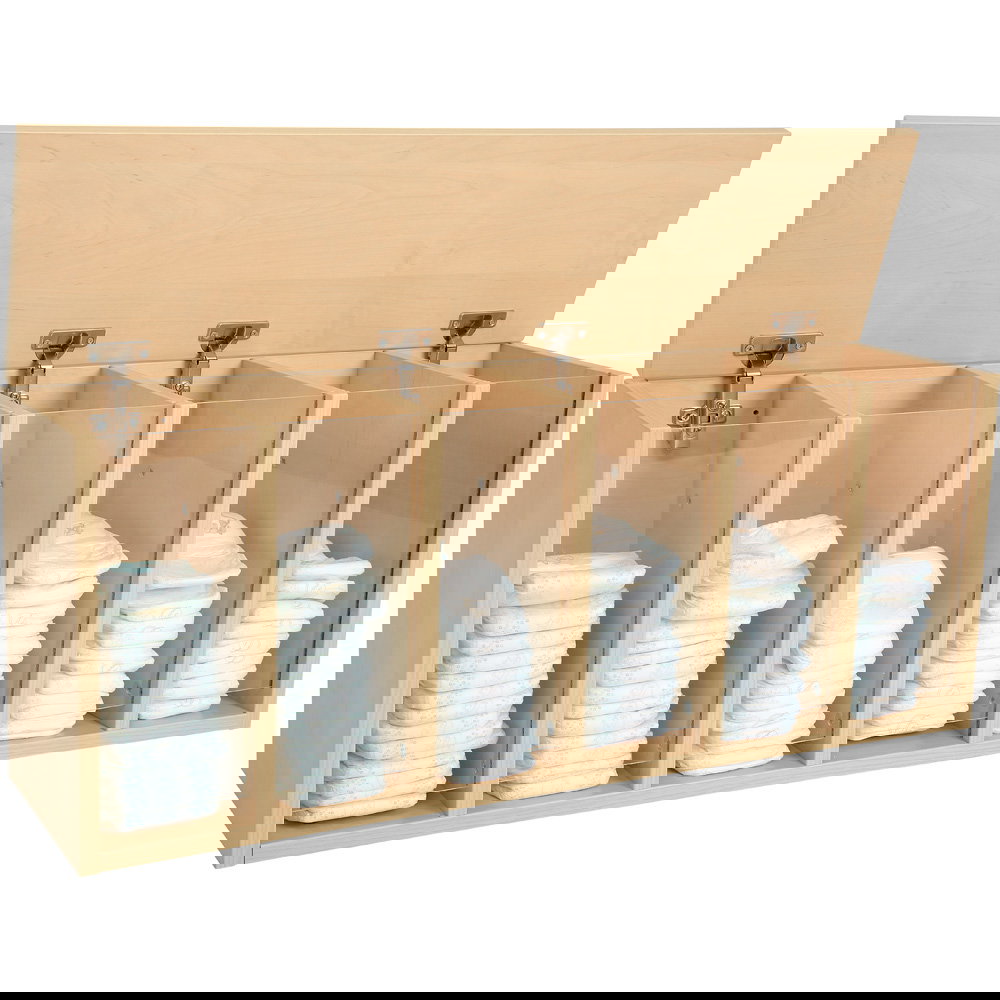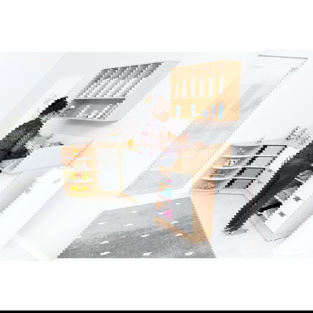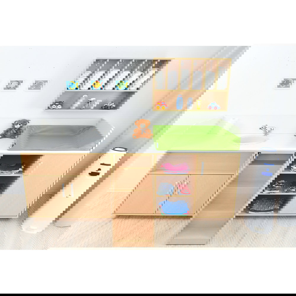 Ein gut organisierter Wickelplatz ist das A und O – egal ob in der professionellen Kindertagesstätte, im Krippenbereich oder im privaten Haushalt. Wenn es beim Wickeln schnell gehen muss, ist langes Suchen nach der passenden Windel oder den Feuchttüchern nicht nur störend, sondern auch ein Sicherheitsrisiko. Denn der Blick und mindestens eine Hand sollten immer beim Kind bleiben. Das Windelhängeregal in Ahorn-Optik ist die ideale Lösung, um Ordnung, Sicherheit und Hygiene direkt über der Wickelkommode zu vereinen.