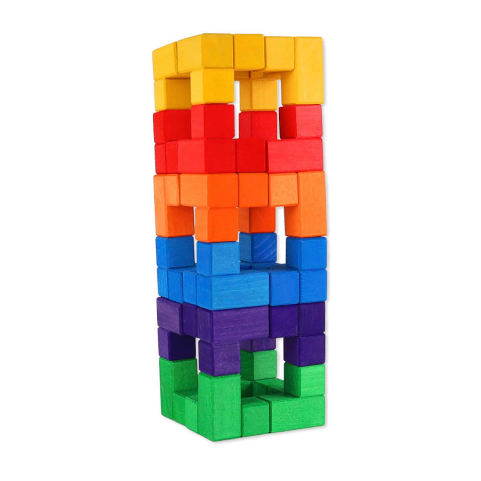 Winkelwürfel im Holzrahmen, 50 Teile – Entdecke die Welt des kreativen Bauens!