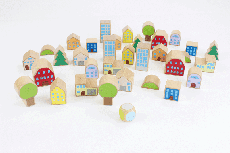- Ziel des Spiels ist es, alle Elemente wie Häuser und Bäume geschickt auf der Scheibe zu verteilen, damit nichts ins Wanken gerät.