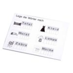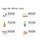 - Bebilderte Wörter nachlegen: Kinder können Wörter mit den passenden Buchstaben legen, die den Bildern zugeordnet werden.