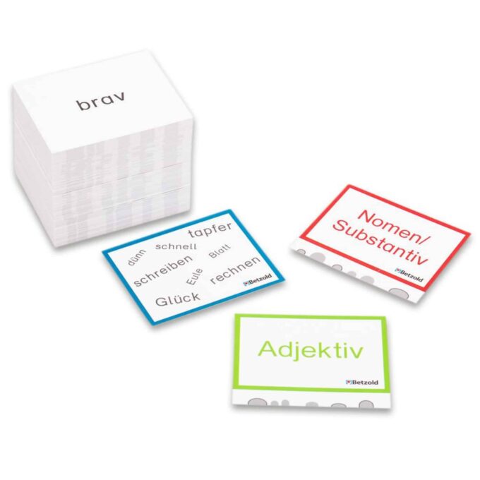 - 3 Aufgabenkarten (Verb, Adjektiv, Nomen/Substantiv)