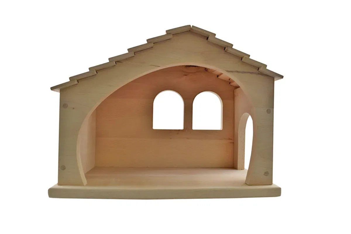 Gefertigt aus hochwertigem, natürlichem Holz, besticht der Stall durch seine schlichte Eleganz und seine außergewöhnliche Stabilität. Er lädt Kinder dazu ein, in Rollenspiele einzutauchen, Szenarien nachzustellen und ihrer Fantasie freien Lauf zu lassen. Die offene Bauweise ermöglicht ein einfaches Bespielen von vorne, sodass kleine Hände mühelos Tiere füttern, Figuren arrangieren oder das Jesuskind in die Krippe legen können. Dieses Spielzeug ist nicht nur eine saisonale Dekoration, sondern ein langlebiger Begleiter durch das ganze Jahr, der Qualität und Spielwert auf harmonische Weise vereint.
