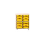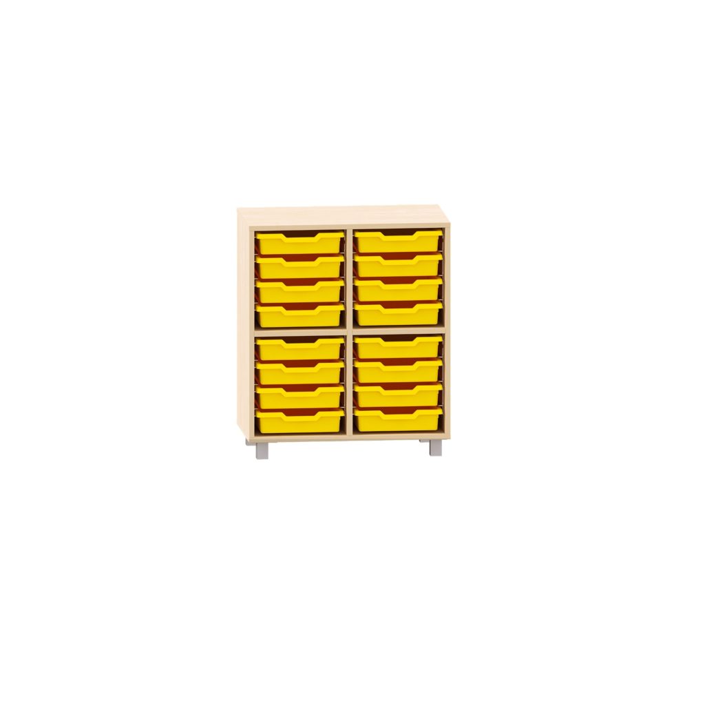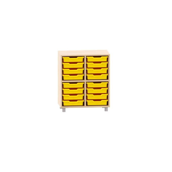 Würfelregal mit 16 kleinen ABS-Boxen und einem Boden für Kitas & Schulen