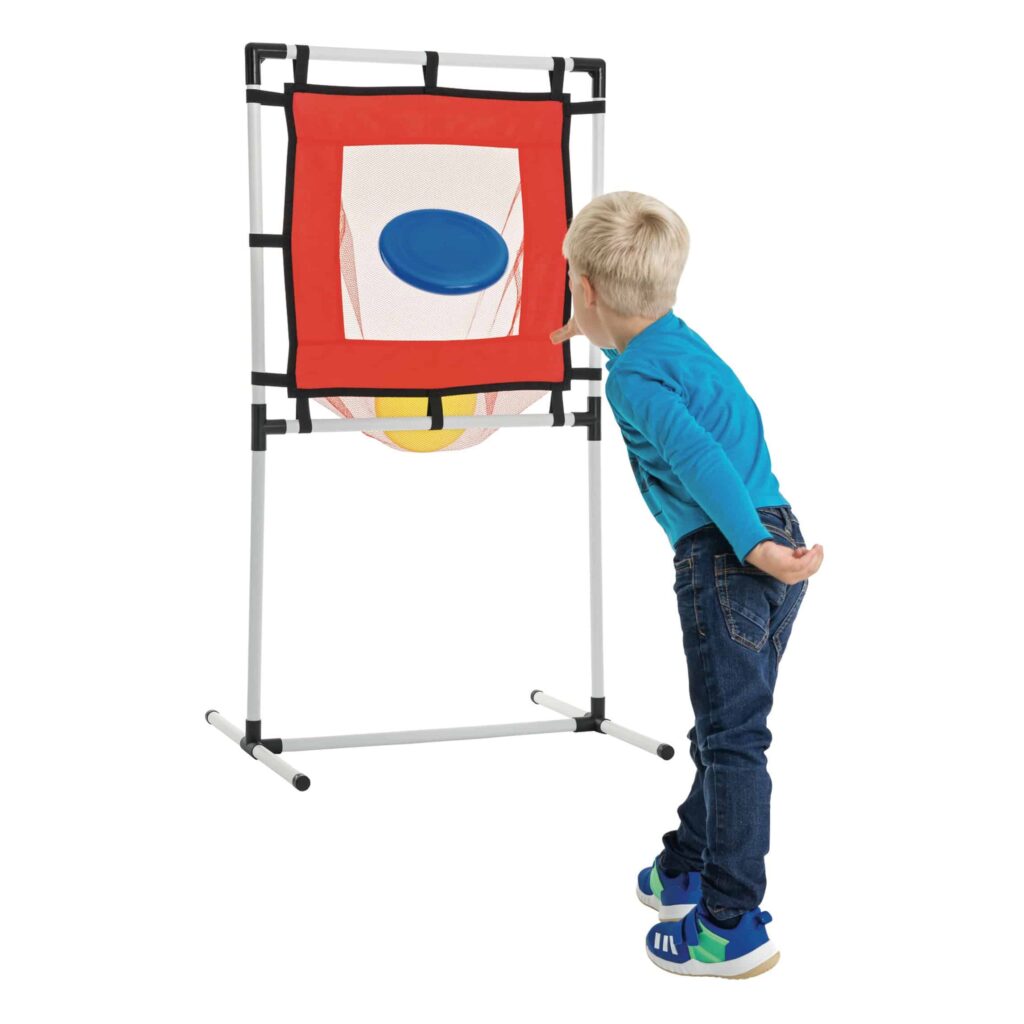 Das Wurf-Tor ist aus stabilen Materialien gefertigt, die für den intensiven Einsatz in Kindergärten bestens geeignet sind. Die sichere Konstruktion mit einem stabilen Netz sorgt dafür, dass die Wurfscheiben perfekt gefangen werden. Die hochwertige Verarbeitung garantiert, dass das Tor auch nach vielen Spielstunden noch in einwandfreiem Zustand bleibt.
