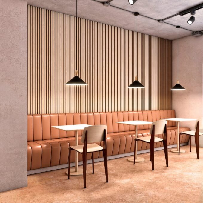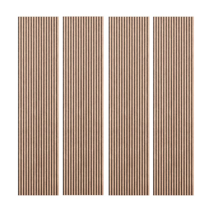 Die Wut Paneele bestehen aus recycelten Polyesterfasern und DM-Lamellen, die auf drei Seiten in elegantem Naturholz ausgeführt sind. Mit einem NRC-Wert von 0,85 bieten diese Paneele eine effektive Schallabsorption, die dazu beiträgt, Störgeräusche zu minimieren und eine entspannte Atmosphäre zu schaffen. Sie sind zudem schwer entflammbar, was zusätzliche Sicherheit gewährleistet.